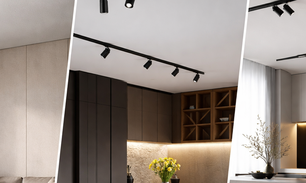 To również dobry wariant dla osób, które zadają pytanie: co lepsze do niskiego sufitu. W praktyce lekki układ z kilkoma kompaktowymi reflektorami na jednej szynie często wygląda czyściej niż kilka osobnych opraw sufitowych rozmieszczonych przypadkowo.